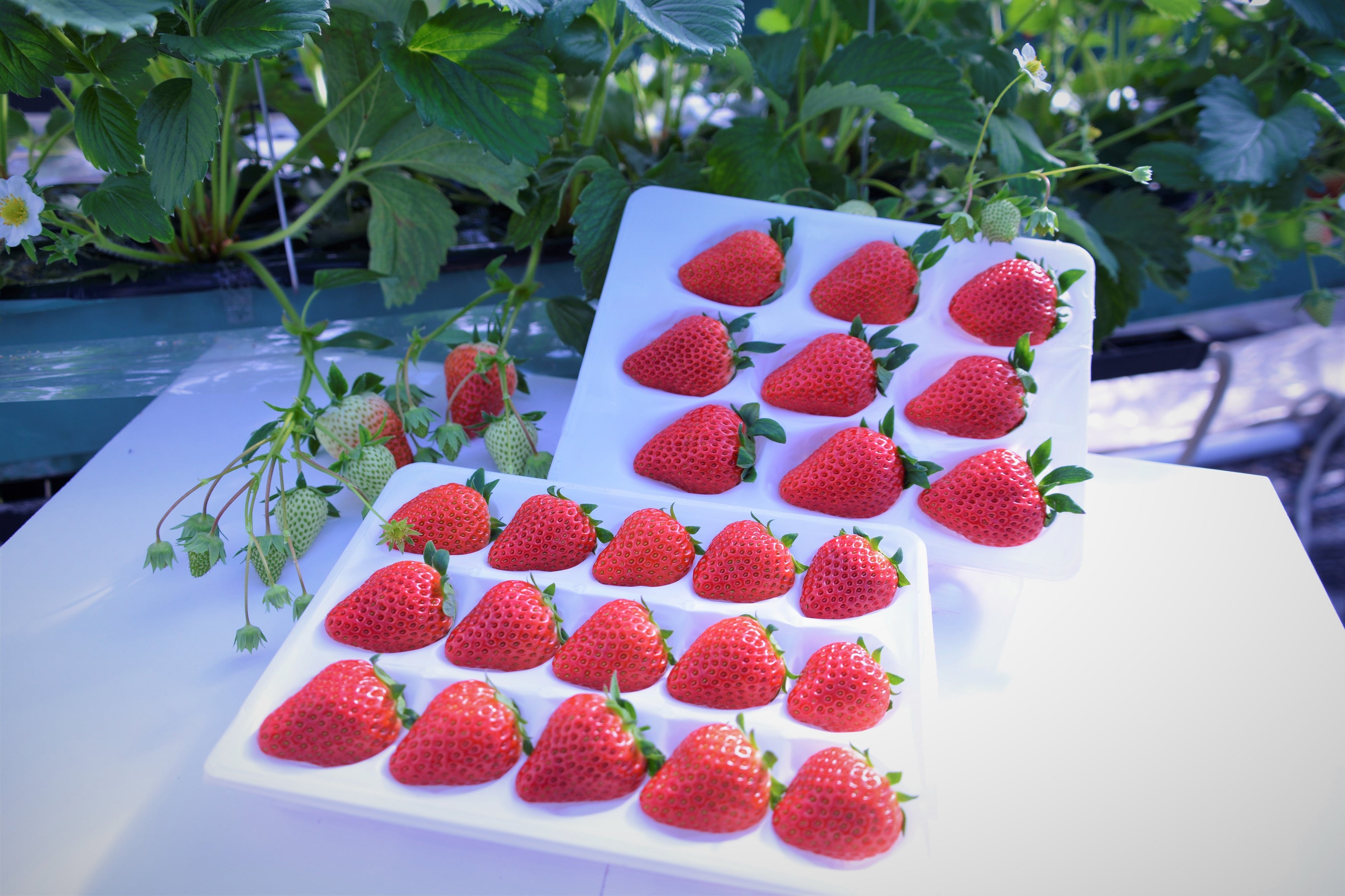 摘み取ってそのまま食べられる安全なイチゴになっております。